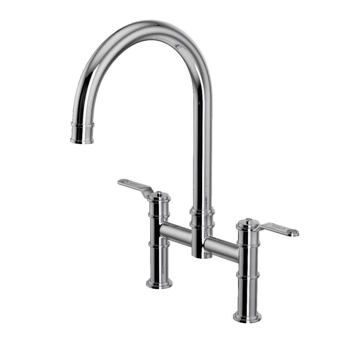 2-gats keukenkraan met hendels (glad of met structuur), zwenkbare uitloop en aerator voor gelijkmatige waterstroom.