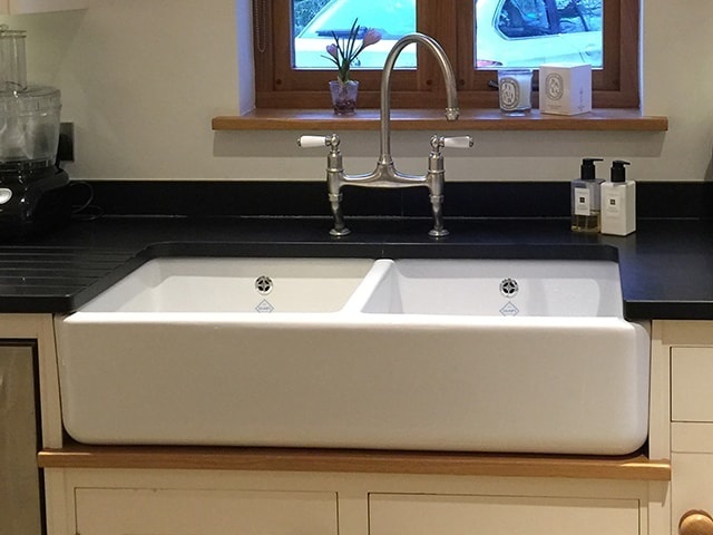 Klassieke keramische keukenspoelbak, handgemaakt op de traditionele manier en met behulp van klassieke materialen