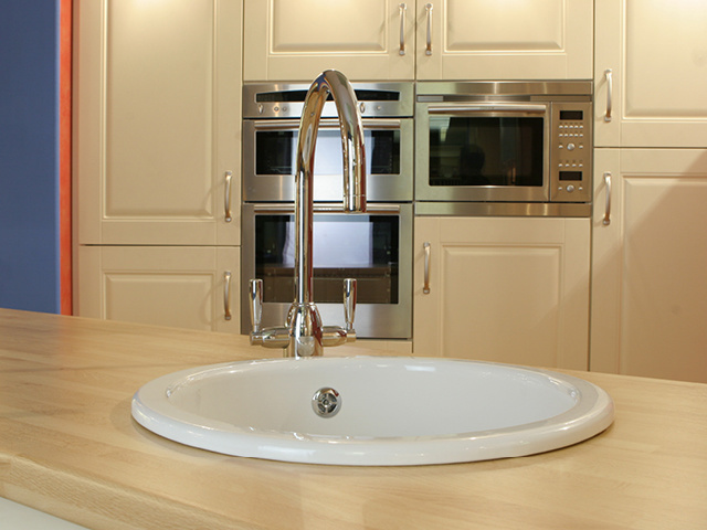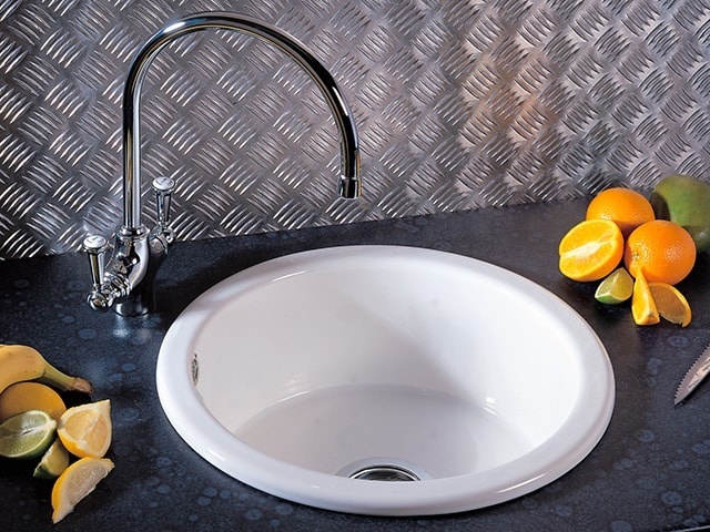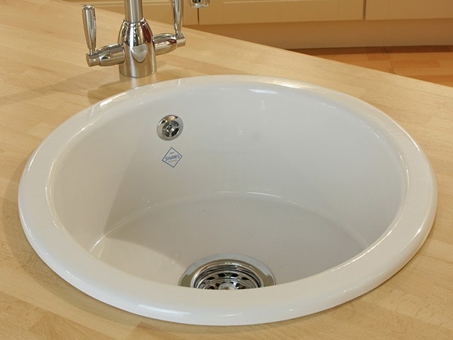 Klassieke keramische keukenspoelbak, handgemaakt op de traditionele manier en met behulp van klassieke materialen