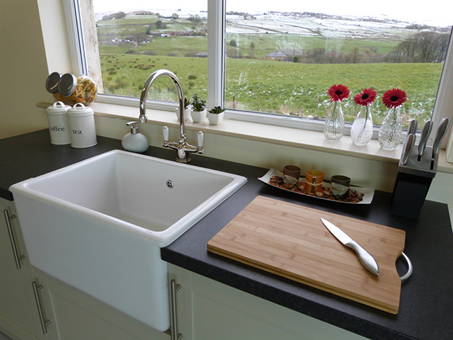 Klassieke keramische keukenspoelbak, handgemaakt op de traditionele manier en met behulp van klassieke materialen